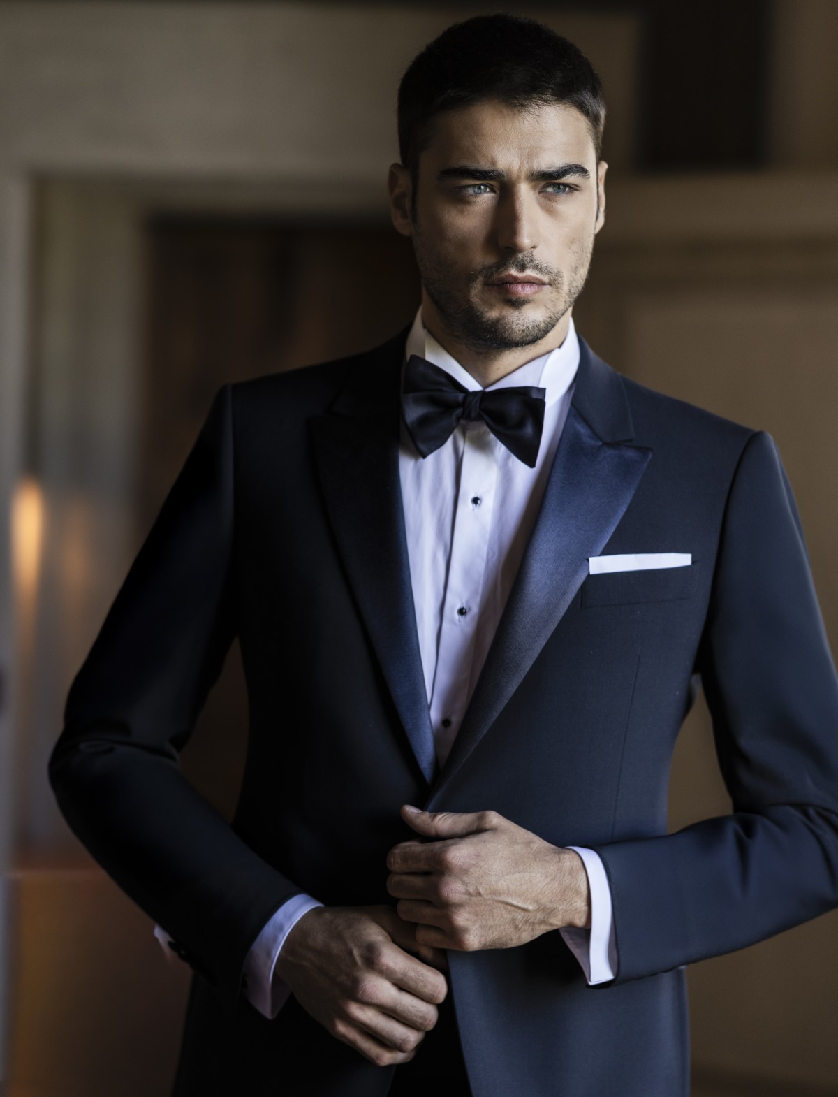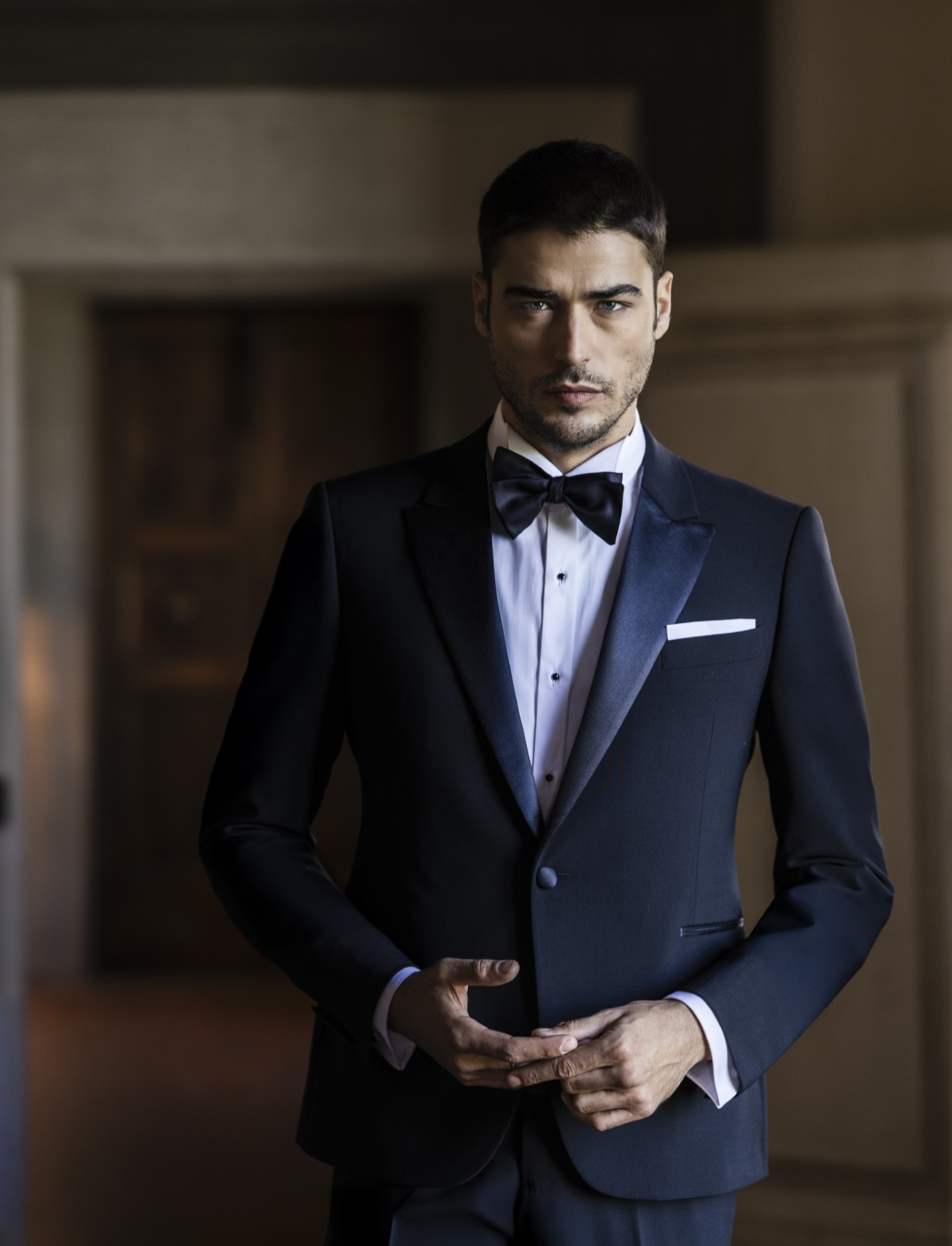 Lo sposo che predilige lo stile classico vestirà la collezione Armani 2026. Le giacche in velluto e i pantaloni con un taglio classico donano all’abito da sposo eleganza e un tocco glamour. Il mezzo tight è la scelta prediletta per questa collezione, abbinato all’intramontabile papillon.